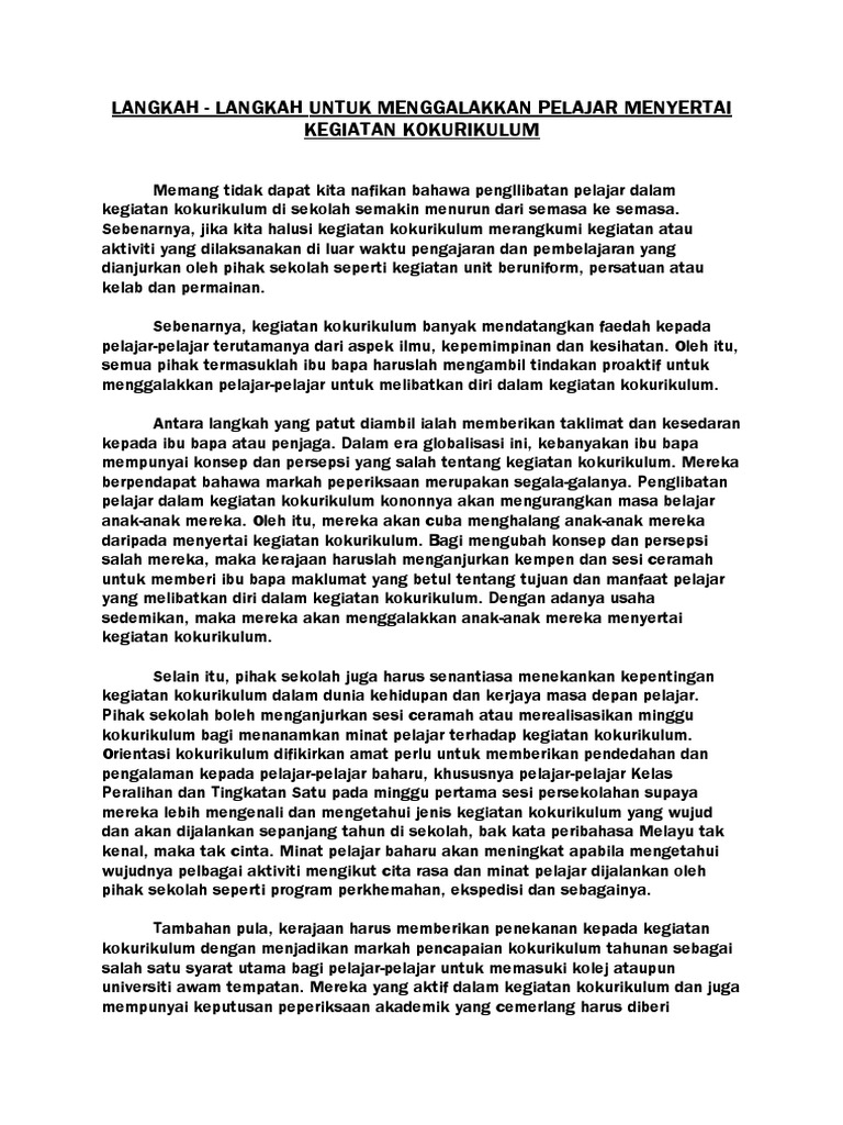 Jangan lupa untuk berikan contoh yang sesuai. Malaysia amat memerlukan remaja berwawasan menelusuri arus pemodenan untuk melangkah dengan. Cara Memupuk Minat Bersukan.